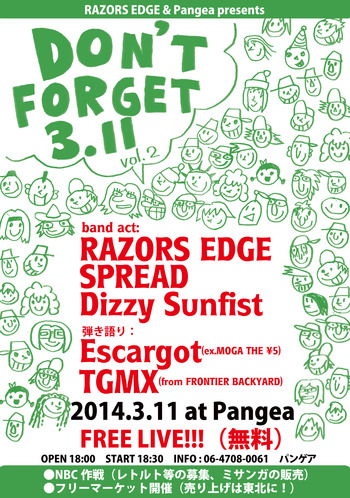 3.11にパンゲアで行なった『DON’T FORGET 3.11』で集まったレトルトはカウンタアクション宮古に送り、募金はNBC作戦の被災地の子供達に文房具を送ろう!作戦に協力させて頂きました。