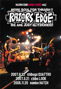 2006.10.29地元大阪の聖地ファンダンゴにて行われたRAZORS EDGE presents "THRASH 'EM ALL!! vol.31"のワンマンライブを[RAZORS EDGE MANIAC SERIES vol.1]と題してDVD化!その日演奏されたMCを少しカットして、曲は全42発を完全収録。